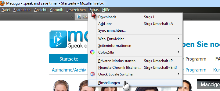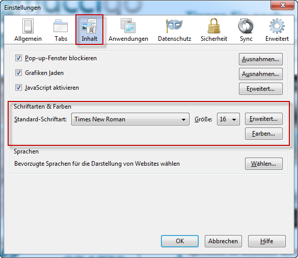 Im Mozilla Firefox finden Sie diese Einstellung unter: Extras -> Einstellungen -> Inhalt
