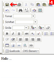 Ansicht des Editors wechseln und einen beliebigen Text einfügen z.B. „Hallo ...“